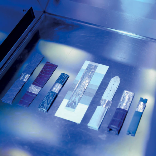L’exposition à la lumière artificielle, plus particulièrement aux UV, constitue un aspect particulier des essais climatiques. Particulièrement adaptée pour vérifier le comportement des cuirs, des polymères ou des textiles, l’évolution de la couleur des articles sera mise en évidence par comparaison, voir quantifiée par colorimétrie.